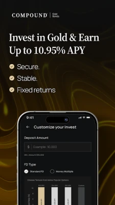 Compound Gold Bonds™️ is a modern fixed-income investment app designed for accredited investors. Earn up to 10.95% APY with daily compounding, backed by real gold and protected with first-loss coverage. Invest securely, track performance, and grow your wealth—all in one place.