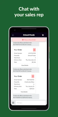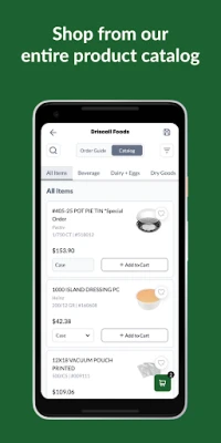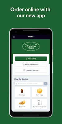 - Simplify your ordering process with a personalized order guide. - Explore our extensive product catalog with item photos and detailed attributes like nutritional info. - Effortlessly access your order history and reorder past favorites. - Conveniently view and pay invoices using Credit Card, Debit Card, or Bank Transfer. - Stay connected with your sales rep and the Driscoll team through in-app chat. - Collaborate with team members to streamline and enhance your ordering experience.