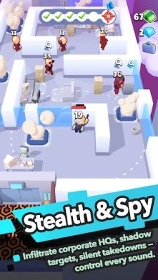 • Stealth & Spy – Infiltrate corporate skyscrapers, hack cams, time **silent takedowns** and manage every footstep’s noise.