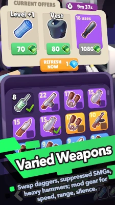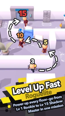 • Level Up Fast – Roguelite Progression – Power up on every floor: leap from Lv 1 Rookie to Lv 15 Shadow Master in one mission. Perks reshape your build on the fly.