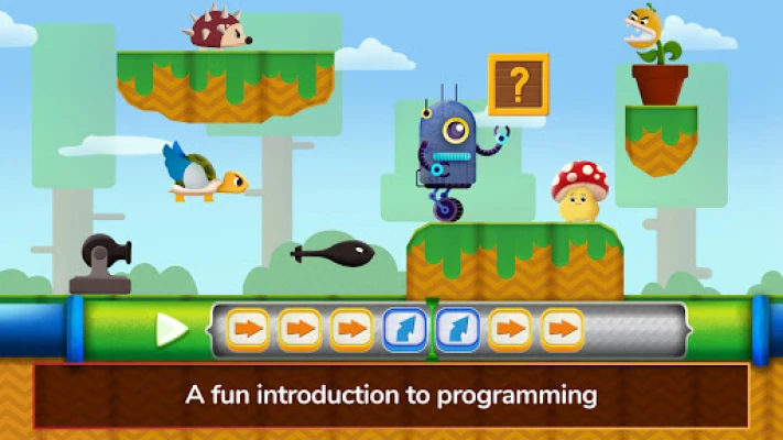 Play and learn freely without pressure or stress. Think, act, observe, ask yourself questions and find the answers. Have fun making the robot move forward, jump and perform all kinds of actions to complete the level.