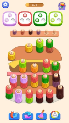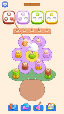 Dive into cascading skeins of yarn entangled around spindles in casual games. Master 3D wool sort games by selecting topmost matching threads - every three twisted strands reveal monochrome bundles. Strategically clear layers to uncover hidden art supplies, blending thread games precision with wool coloring creativity. Beware limited waiting space demanding calculated moves as you progress through this unique fusion of yarn sort puzzles and artistic expression.